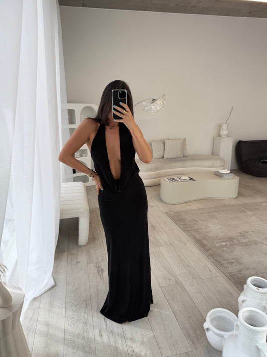 Aine Black Cowl Neck Maxi Dress